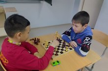 Каникул вакытында түгәрәкләргә укучылар теләп йорделәр. Фаттахов Р.К. шахмат серләренә өйрәтә