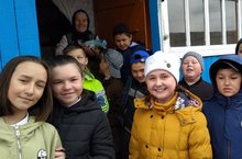 5а сыйныфы укучылары тыл ветераны Минһаҗева Рәинә апаны бәйрәм белән котлап кайттылар.