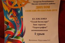 "Тукай бизәкләре" бию төркемен "Йолдызлык - 2019" республика конкурсының район турында "Хореография" номинациясендә 1 урын алуы белән котлыйбыз!!! Җитәкчесе - Ольга Станиславовна Нуруллина. Молодцы!!! Алга таба да уңышлар юлдаш булсын сезгә!!!