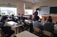 Бүген 6 нчы А сыйныфы укучылары балигъ булмаган балалар белән эшләүче инспектор белән очрашуда катнаштылар. Соңгы арада популярлык алган төркемнәр турында әңгәмә алып бардылар. Интернет челтәрендә аралашу нечкәлекләрен кабат исләренә төшерделәр.