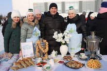 Прошел фестиваль "Җиз кыңгырау моңнары". Коллектив школы угостил всех пришедших на праздник горячим чаем и оладьями