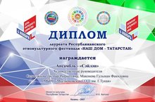 На ежегодном этнокультурном фестивале "Татарстан наш родной дом", проводимый Министерством культуры РТ фольклорный ансамбль "Сайлан" был удостоен звания лауреата.