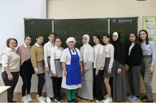 В преддверии Года единства родных языков и народов в рамках муниципального проекта "Мөслим кызы, Мөслим егете" состоялась встреча с поваром нашей столовой Шарифуллиной В. на тему "татарская народная кухня", которая познакомила учащихся с некоторыми секретами кулинарии