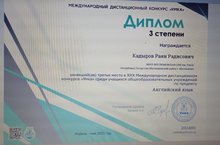 4нче В сыйныф укучысы Кадыров Р.Р. , 3нче Б сыйныфыннан Миргалимова Э.И. инглиз теленнән "Умка" исемле дистацион конкурста катнашып 3 һәм 2 дәрәҗәдәге дипломнар белән бүләкләнделәр. Укытучысы Зиятдинова Г.Х.