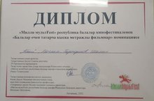 Туган телләр һәм халыклар бердәмлеге елы уңаеннан, республика балалар кинофестиваленең "Балалар өчен татарча кыска метражлы фильмнар" номинасендә мәктәбебез укучысы җиңү яулады Газетдинов Ш.