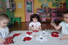 С воспитанниками сада провели дидактическую игру "Посади божью коровку на цветок".Во время игры у детей развивается логическое мышление,память .