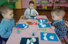 Балалар кисеп ябыштыру эшләрен теләп башкаралар. Буген без әниләр бәйрәменә буләкләр ясадык.