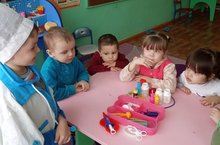 В детском саду провели дидактическую игру "Кто что делает?". Дети познакомились с разными профессиями врачей.Узнали об обязанностях терапевта ,хирурга ,педиатра и т д. Играли в сюжетно-ролевые игры.