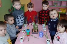 Воспитанники детского сада в уголке природы посадили лук.Они каждый день наблюдали за ростками ,ухаживали,поливали.Полученные знания применили во время игры "Сделай рекламу!" Рассказали о пользе лука ,о применении .