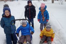 Воспитанники детского сада весело и интересно проводят время на свежем воздухе.Играют в разные спортивные игры,катаются на санях.