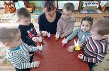 Балаларның хәрәкәт активлыгын төрле юнәлештә үстереп,кечкенә кыршаулар белән төрле күнегүләр, төз атарга өйрәнүне дәвам иттек.При метании в цель ребенок сосредоточивает свое внимание на пападании в указанный предмет.