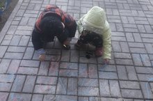 Укытучылар коне белән котлап асфальта рәсем ясыйбыз.Рисунком на асфальте поздравили всех учителей с их профессиональным праздником.