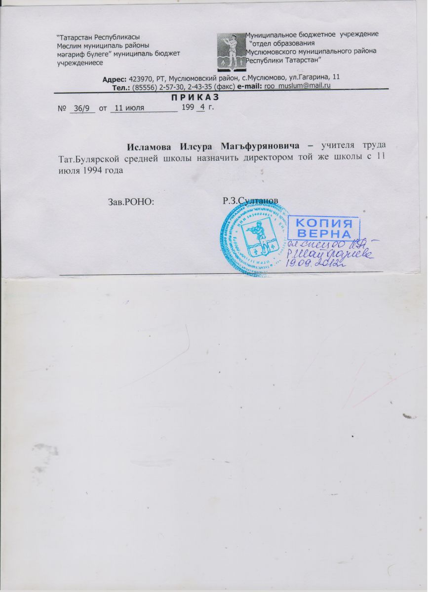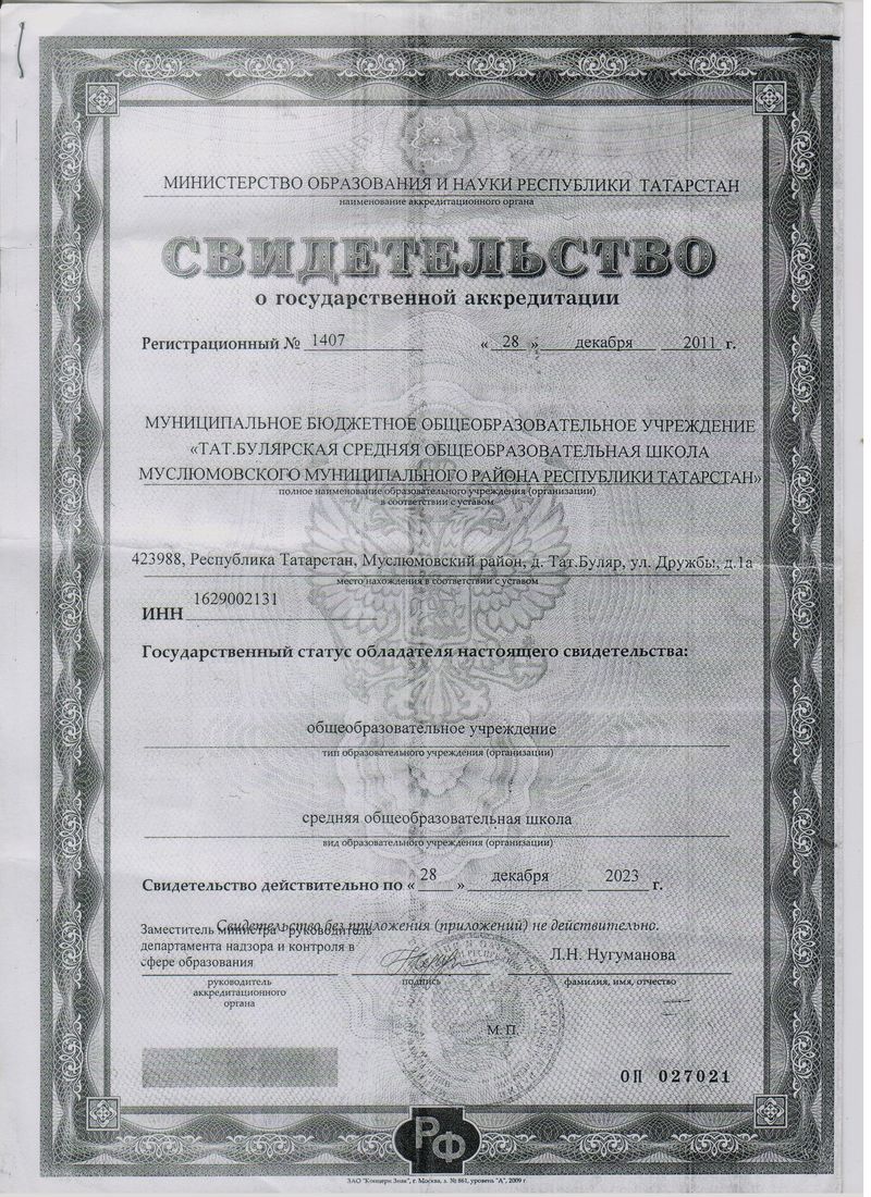 Муниципальное бюджетное общеобразовательное учреждение «Тат.Булярская средняя общеобразовательная школа» Муслюмовского муниципального района Республики Татарстан