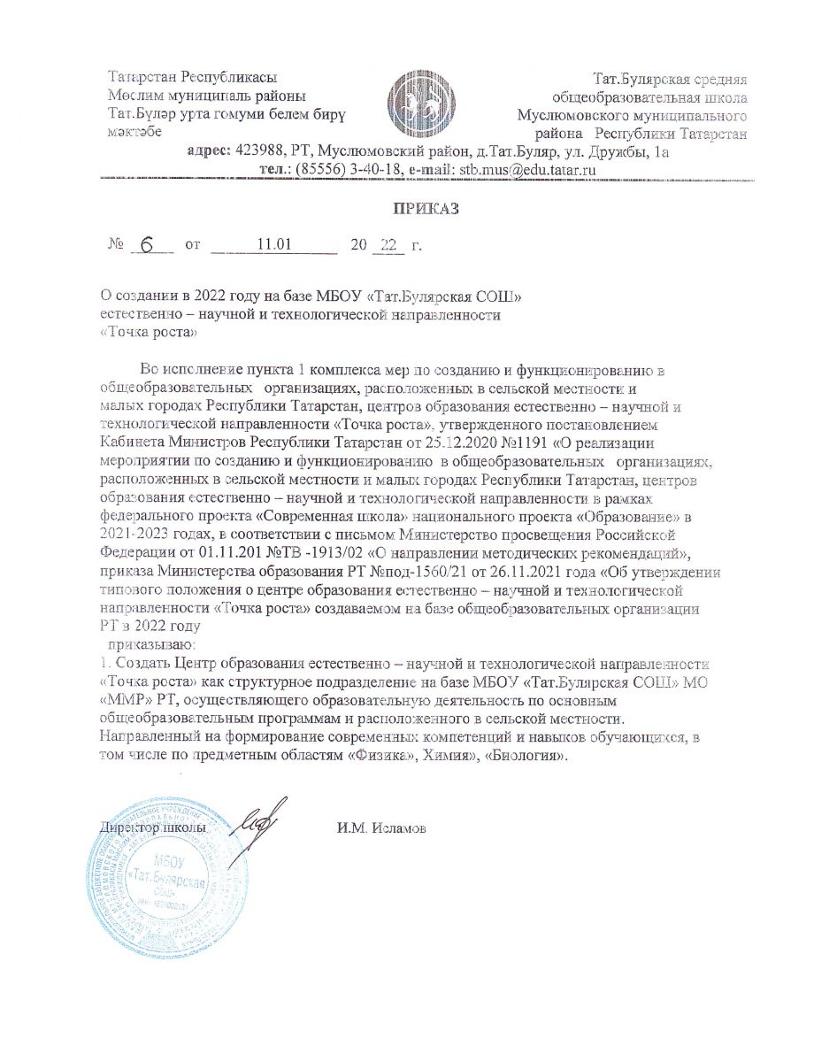 - Список образовательных организаций РТ на базе которых планируется создание и функционирование Центров образования естественно-научной и технологической направленностей «Точка роста» в 2022 году (Приложение 1)