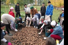 Көзге уңыш! Укучылар һәм мәктәп работниклары көче белән мәктәп яны бакчасындагы уңышлар җыелды. 20.09.2012