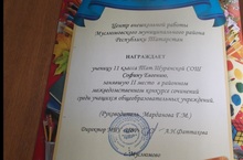 11 апреля ученики нашей школы: Витязева А., Петрова В., Софина Э., Галимова А. участвовали в конкурсе "Яшь бөреләр". 12.04.2012
