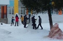 Укучылар Яңа ел бәйрәменә әзерләнәләр, кардан сыннар ясыйлар