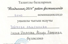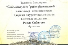6 февраля состоялся районный тур конкурса талантливых детей "Созвездие-2014".,на котором успешно выступила ученица 10 класса Сабитова Раиля (рук.Шаяхметова М.М.). Она стала лауреатом 1 степени в номинации "вокал соло".