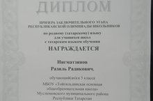 Ученик Тойгильдинской общеобразовательной школы представлял Муслюмовский район на олимпиаде по родному татарскому языку. Поздравляем ученика 5 класса и его руководителя Давлетову Р. Ф. с большим успехом. Нигматзянов Разиль стал призером республиканского тура олимпиады по татарскому языку.