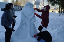 Как создать настроение Нового года? И, конечно же, снежными фигурами. Дед Мороз и Снегурочка, которые украшают школьный двор, а также выстроившиеся в ряд елки помогают передать дух праздника нашим ученикам. Снежные фигуры, сделанными своими руками, воспитывают в учениках гордость за свой труд.