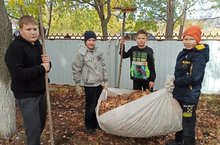 Кояшлы җылы көннәрне бер дә бушка уздырмыйбыз. Яфракларны җыештырып мәктәп ишегалдында тәртип ясап куйдык.