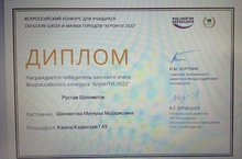 Поздравляем ученика 9 класса Шаяхметова Рустама с победой во Всероссийском конкурсе "АгроНТИ-2022".