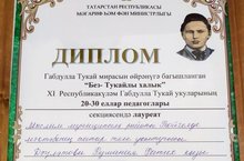 Очередной наш успех- учитель татарского языка и литературы Давлетова Р. Ф.стала лауреатом в XI Республиканских чтениях имени Габдуллы Тукая Поздравляем!