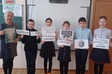6 класс в рамках проекта "Мөслим егете. Мөслим кызы" провели акцию "Сообщи, где торгуют смертью". Они призывали учащихся вести здоровый образ жизни.