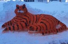 Перед школой появился тигр, будущий хозяин нового года. Дети, учителя с удовольствием готовятся к Новому году.