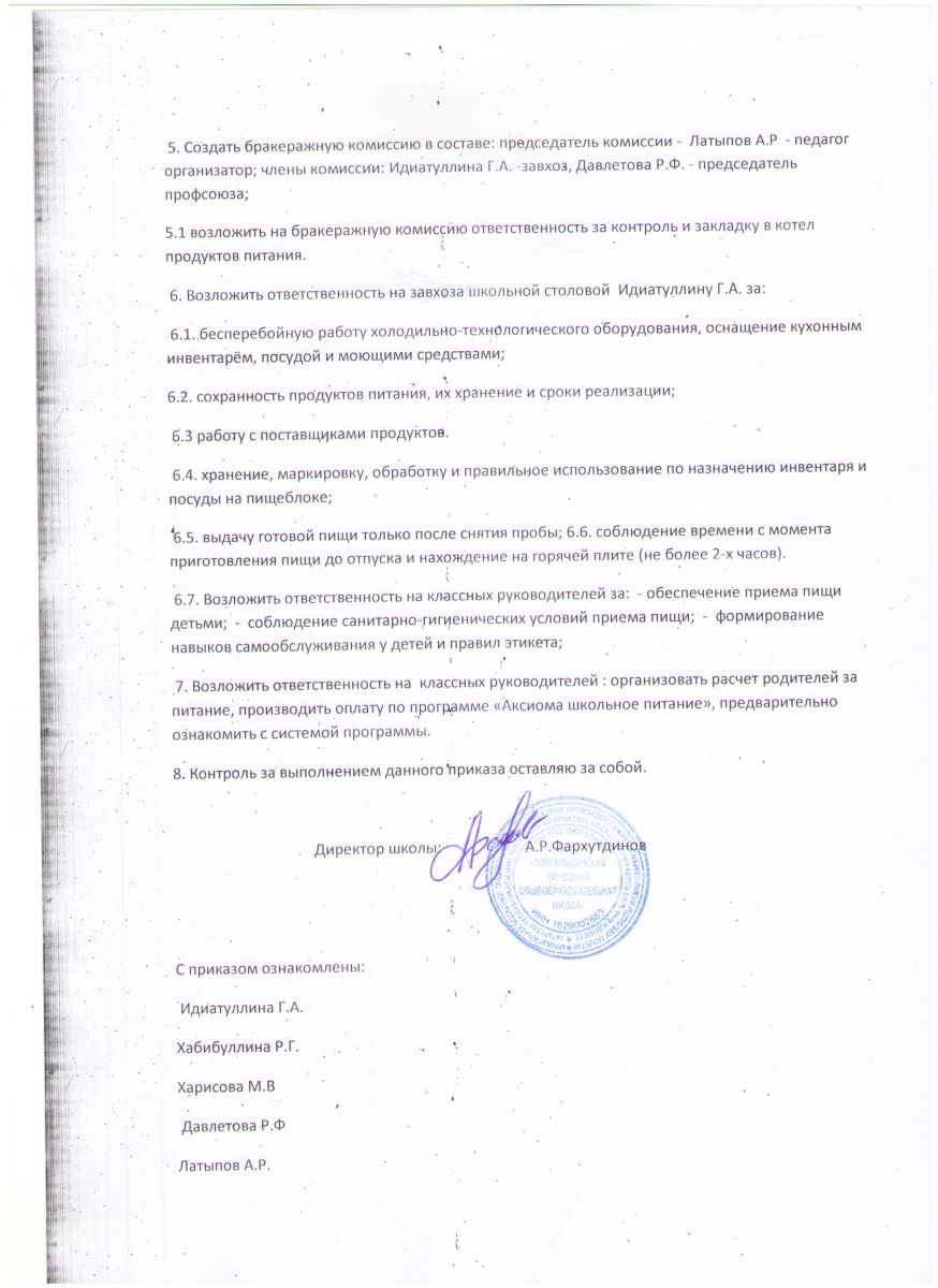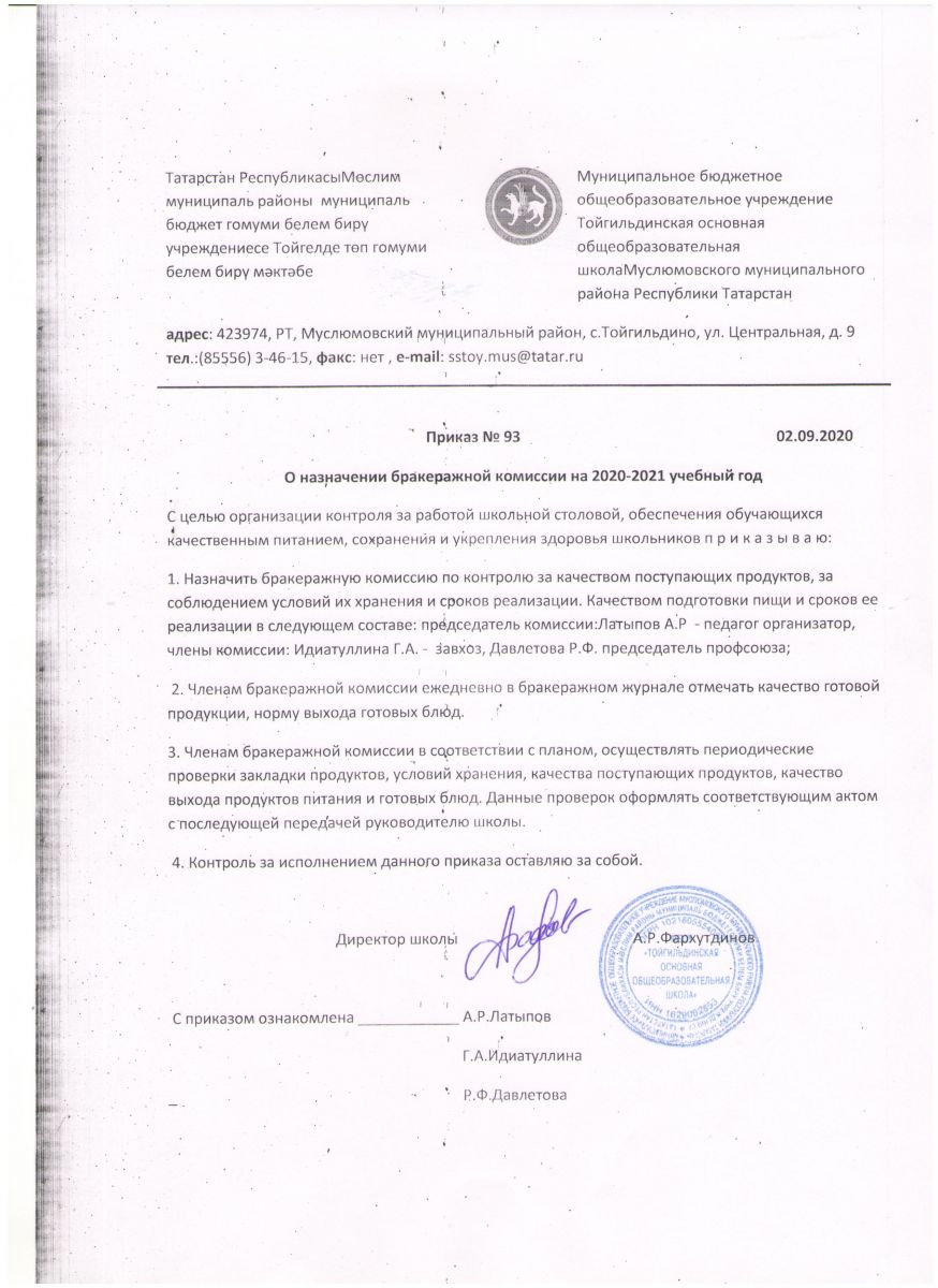 Приказ о бракеражной комиссии на 21023-2024 учебный год