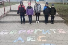 Дети помощью цветных мелков изобразили на асфальте зеленый лес. Каждый желающий имел возможность оставить свой след в создании рисунка. Воспитатель рассказала ребятам, об экологических проблемах и призвала