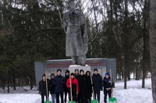 Ребята нашей школы постоянно шефствуют над памятником,погибшим в годы Великой Отечественной войны 1941-1945 годы:следят за его состоянием,зимой очищают от снега.