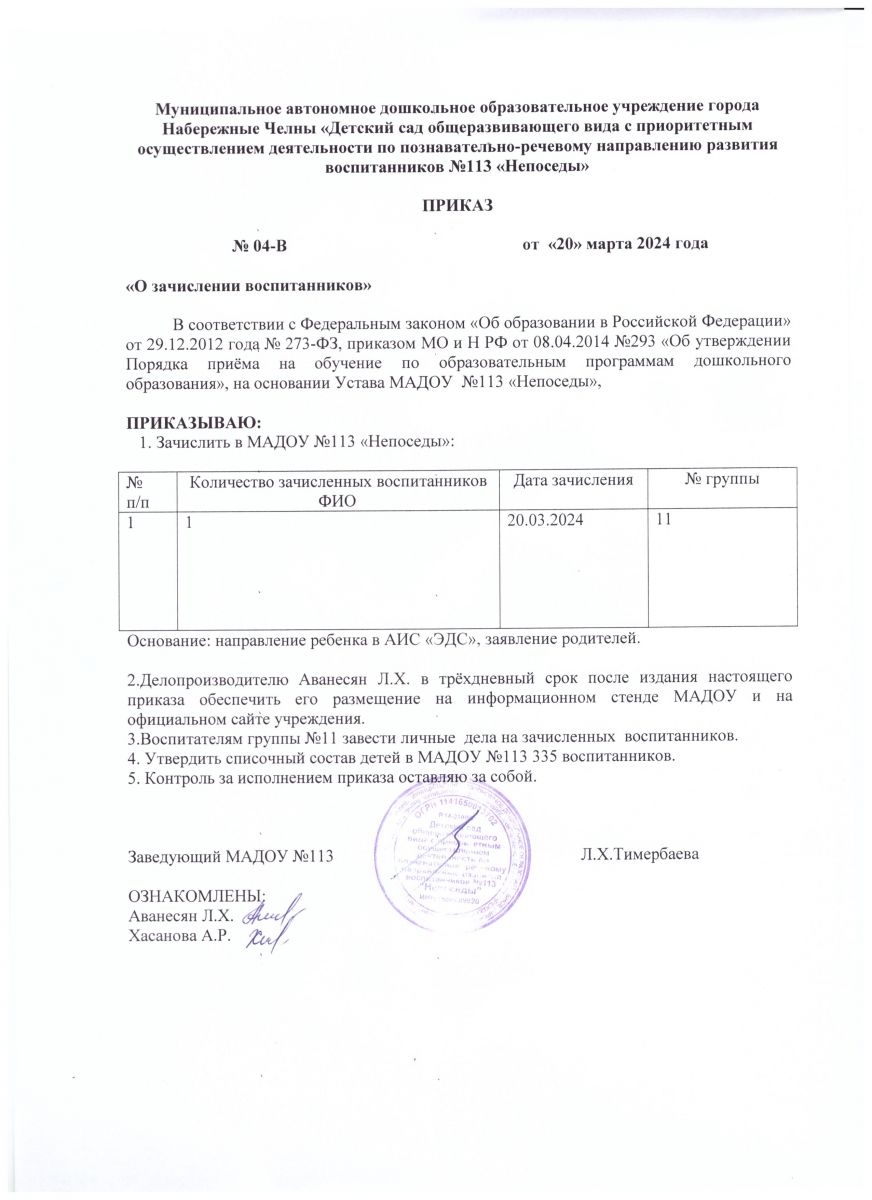 Приказы о списочном составе детей март 2024 г.