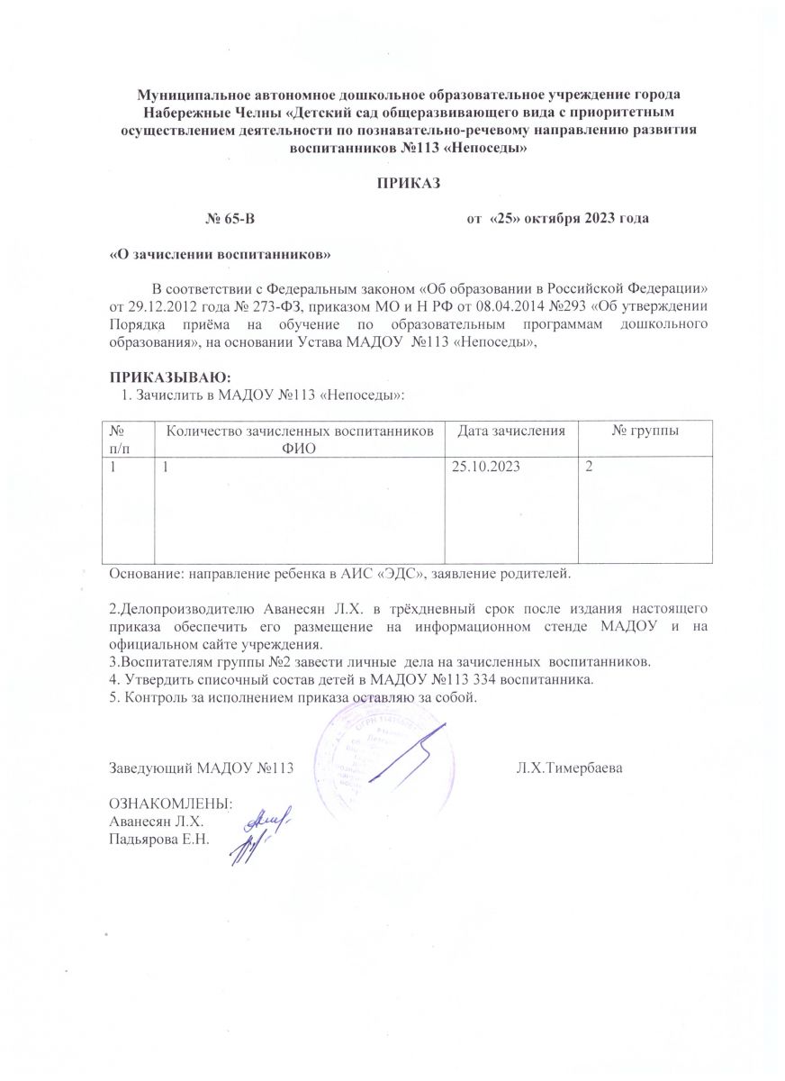 Приказы о списочном составе детей октябрь 2023 г.