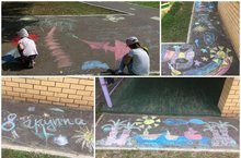 В нашем доу прошёл конкурс "Летние фантазии". Каждая группа устроила настоящий художественный поединок. Дети с удовольствием рисовали на асфальте мелками. Очень получилось ярко.