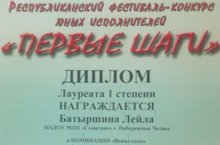 Наша звёздочка стала Лауреатом 1 степени в открытом республиканском фестиваль-конкурсе юных исполнителей «Первые шаги»