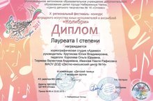 18 апреля 2015 года в ЦДТ «Огниво» № 16 состоялся гала-концерт Х регионального фестиваль-конкурса эстрадного искусства юных исполнителей и ансамблей «Колибри». В церемонии награждения приняла участие хореографическая студия «Адажио». Номер «Ежики» был награжден лауреатом 1 степени. Желаем дальнейших успехов и побед. Так держать!