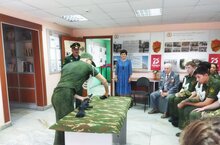 С интересом слушают постовцы школы 46 им. кавалера ордена Мужества Д. Бадретдинова историю экспонатов,найденных во время поисковых экспедиций Смирновым А.В. 16.07.2021