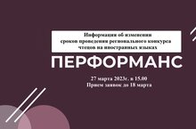 Информация об изменении сроков проведения регионального конкурса чтецов на иностранных языках «Перформанс» 15.03.2023