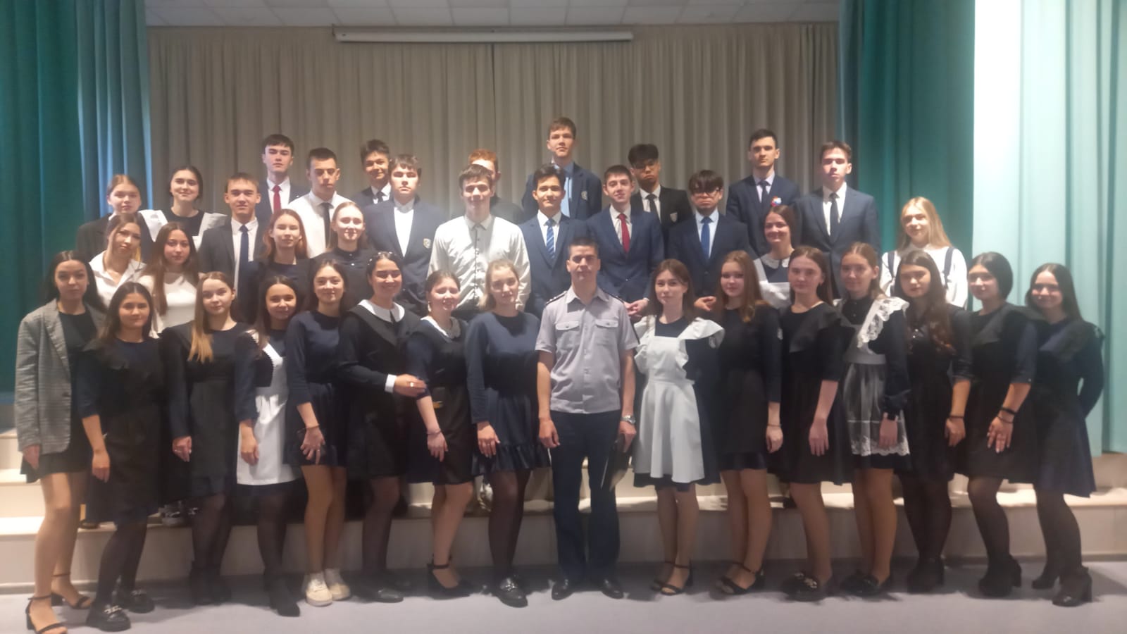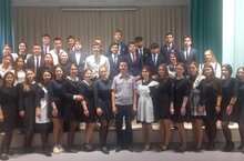 Бүген гимназиядә патриотик темага чара узды. Укучылар белән очрашуга Чураков Дмитрий Анатольевич - ,,Ветераннар һәм республика буенча тәртип урнаштыру гаскәрләренең запастагы хәрбиләр оешмасы" ("Союз ветеранов и военнослужащих запаса войск правопорядка по республике Татарстан") региональ җәмәгать оешмасы рәисенең урынбасары килде. Ул әлеге оешманың эшчәнлеге, хәрби-патриотик тәрбия хакында чыгыш ясады. Очрашуда 2б сыйныф укучылары ,,Солдатта булган диләр" , 4а сыйныф укучылары ,,Озатып вокзаллар каршында" җырларын хор белән башкардылар. 10б сыйныф укучысы Ишалина Адилә башкаруында ,,Зәңгәр күлмәк" җыры, 7б сыйныф укучысы Хәкимова Лилиянең шигырь укуы, 3а сыйныф укучысы Зиннәтуллина Гүзәлнең бию тамашачылар тарафыннан яратып кабул ителде. Очрашуда 2б, 4а, 6б, 6в, 8в, 8г, 10а сыйныф укучылары катнашты. Чарада катнашкан кунак - Дмитрия Анатольевич : ,, Быел мин катнашкан чараларның иң яхшы оешканы сезнеке булды", - дип, кәефләрне күтәрде. Чыннан да, очрашу бик матур узды.