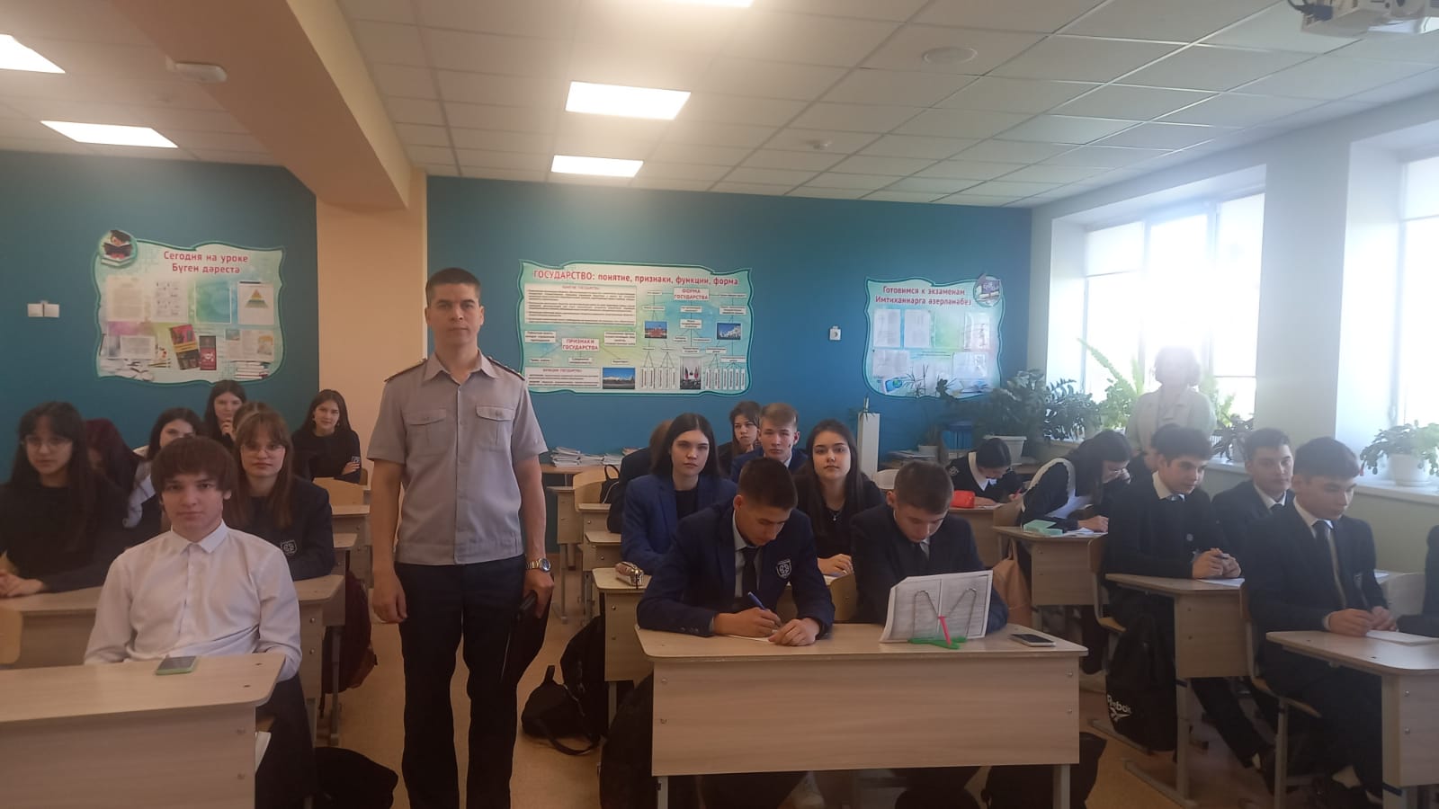 "Укытучылар hәм остазлар" елы уңаеннан гимназиядә hөнәри ориентация юнәлешендә эш ел дәвамында уздырылып килә.10 - 11 нче сыйныф укучылары ФСИН (Федеральная служба исполнения наказаний) хезмәткәре Йосыпов Айзат Марат улы белән очраштылар. Җәза бирүне үтәү федераль хезмәте мәктәпне тәмамлаучы кызлар hәм егетләрне эчке эшләр органнарында эшләү өчен тиешле белем бирүче югары уку йортларына укырга керергә чакыра. Югары уку йортлары Воронеж, Пермь, Владимир, Самара,С.Петербург, Рязань шәһәрләрендә урнашкан, уку тәмамлангач, яшь хезмәткәр Татарстанга жибәрелә. Кызыксынсагыз, 8(843)231-71-52 телефоны белән шалтыратып, мәгълумат алырга мөмкин.