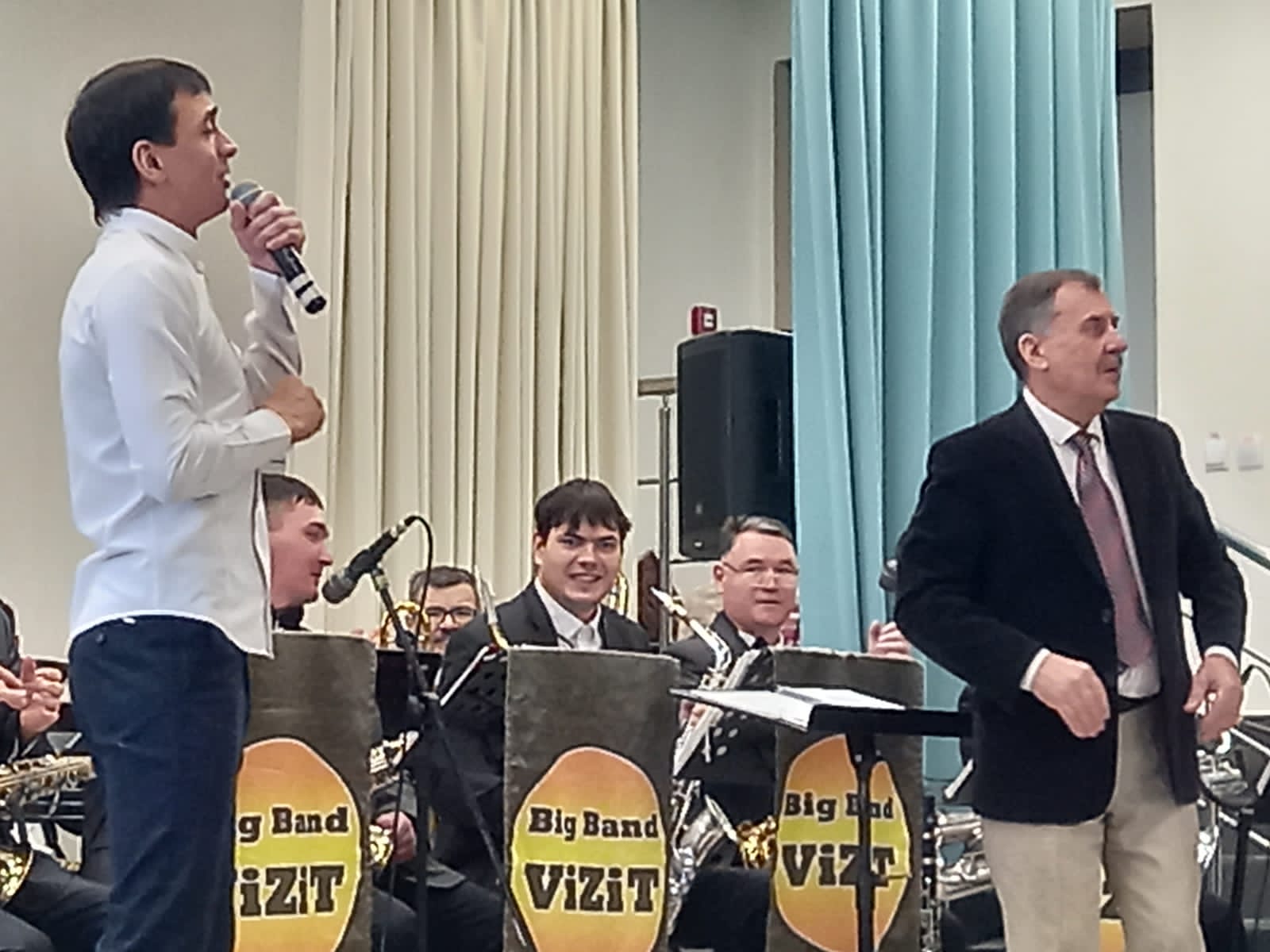 Яр Чаллы шәһәренең ,,Визит" джаз оркестры 2007 нче елда оешкан. Җитәкчесе - Владимир Йосифович Завьялов. Әлеге джаз оркестры, хактан да, шәһәребезнең визит карточкасы кебек, мәдәни-музыкаль йөзен билгели. Гимназия укучылары әлеге оркестр башкаруында татар , рус, инглиз җырларын, көйләрен тыңладылар, гаҗәеп матур музыка дөньясына чумдылар, hәр музыка уен коралының фальшсыз яңгыравын ишеттеләр. Музыкантларның да, яшь тамашачыларның яратып алкышлауларын күреп, куңелләре күтәрелде.