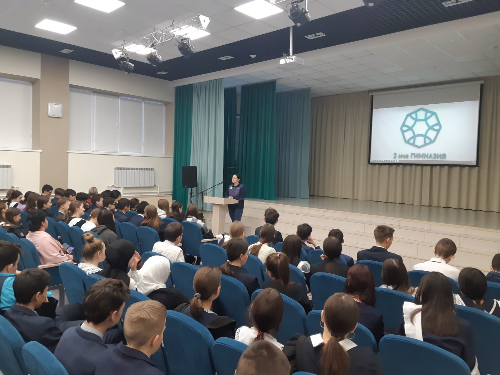 Бүген гимназиягә Чаллы су үткәрү оешмасыннан хезмәткәрләр буенча баш белгеч Галимханова Ольга Владимировна һәм гимназиянең элеккеге укучысы, “Челныводоканал” җавалылыгы чикләнгән җәмгыятенең су белән тәэмин итү һәм инженерлык