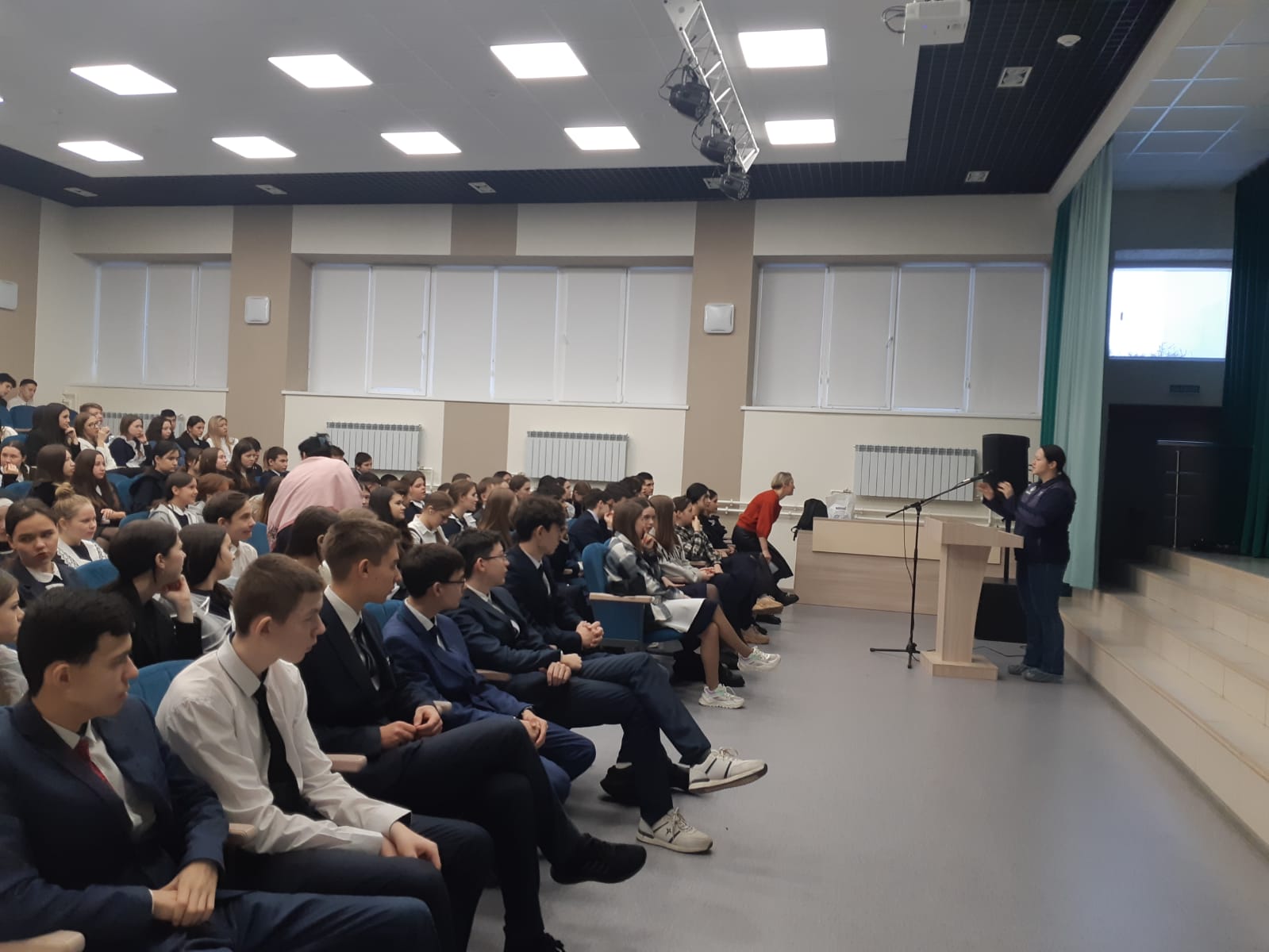 коммуникацияләре баш технологы Черникова Диләрә Ирек кызы килде. Алар 9-11 сыйныф укучыларына үз оешмаларына кагылышлы роликлар тәкъдим иттеләр, укучыларны кызыксындырган сорауларга җавап бирделәр. Караган роликлар буенча викторина оештырылды. Викторинада җиңүчеләр бүләкләр белән бүләкләнде. Очрашуда һәр укучыга куен дәфтәре тапшырылды. -
