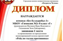 Сезнең дә уеннарда катнашып җиңгәнегез бармы? Җиңгән очракта нинди хисләр кичерәсез? Әле күптән түгел генә безнең гимназия укучылары “ГЦДТиМ №1” дә үткәрелгән “Чаллы патриотлары” дип аталган шәһәр хәрби-патриот уен программасында катнашып “Каршы як тылына рейд” хәрбиләштерелгән киртәләрне җиңү буенча ярышта I нче урын яулады. Ярыш 5 этаптан торды. Җиңү җиңел генә бирелми. Шулай булса да, гимназиянең 8А,8Г, 9А, 9Б класс укучыларыннан торган команда сынатмады. Афәрин, укучылар.