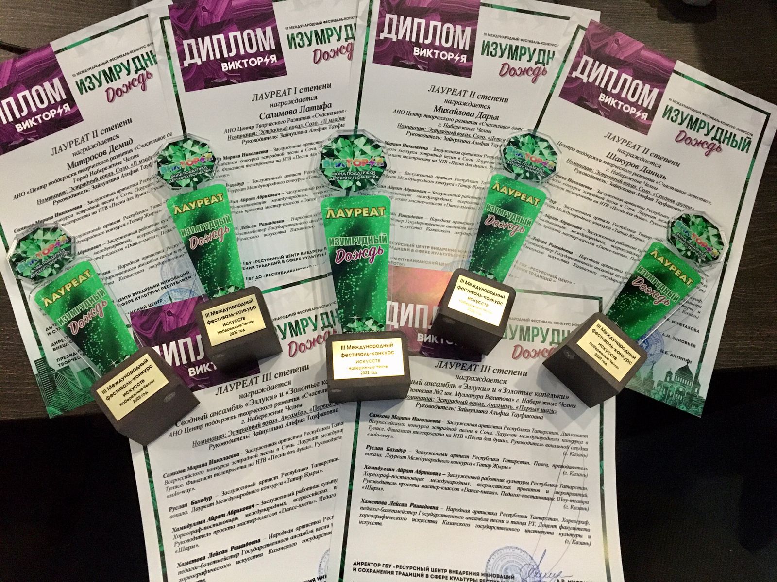 Бүген шәһәребезнең "КамАЗ" мәдәният сараенда "Изумрудный дождь"дип аталган Халыкара җыр бәйгесе булып узды. Бәйгедә М.Вахитов исемендәге гимназиядә эшләп килүче Әлфия Тәүфыйковна җитәкчелегендәге "Әллүки " вокал түгәрәгенә йөрүчеләр катнашып 3нче дәрәҗә лауреат дипломы белән бүләкләнделәр. Аларны беренче җиңүләрен белән котлыйбыз ,афәрин!