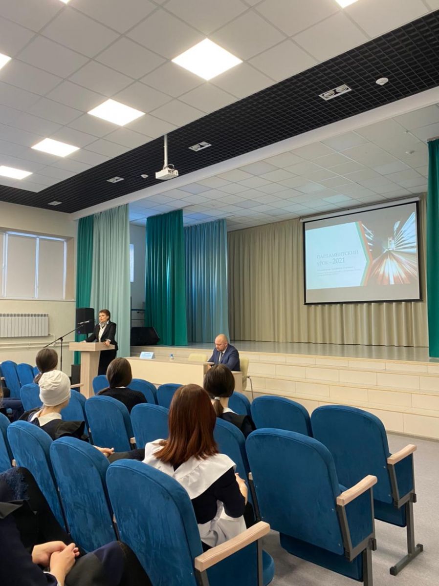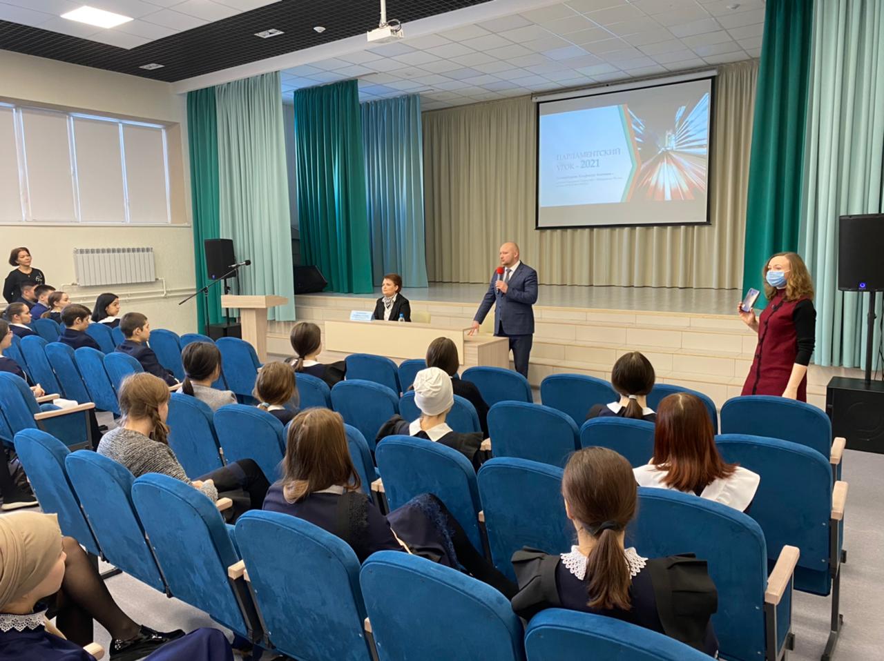 Буген гимназиядә туган телләр һәм халыклар бердәмлеге елына багышланган парламент дәресен Шәһәр Советы депутаты, Чаллы дәүләт педагогик университеты ректоры Галиакберова Альфинур Азат кызы үткәрде.