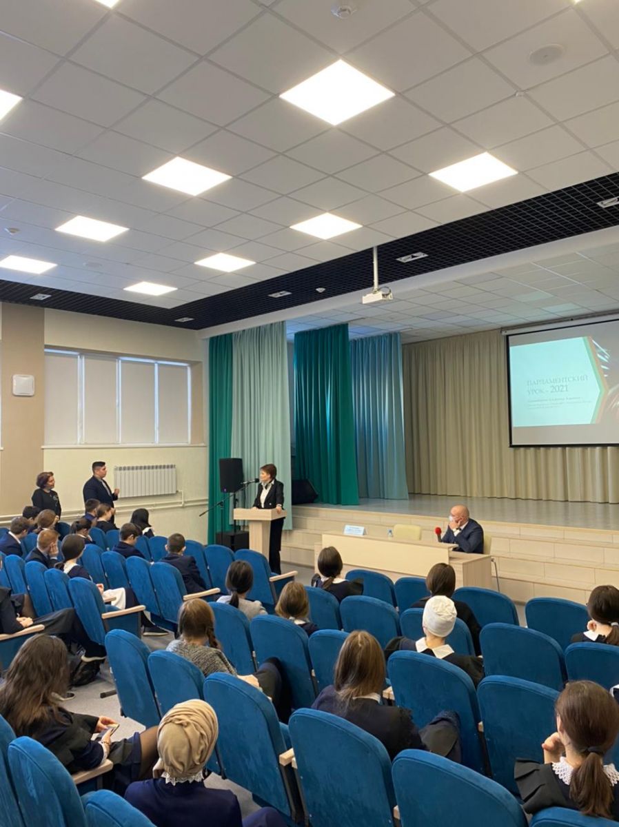Сегодня, 18 февраля, для учащихся 9-11 классов гимназии прошел "Парламентский урок". Учащиеся встречались с ректором Набережночелнинского государственного педагогического университета, доцентом, кандидатом экономических наук, депутатом Горсовета г. Набережные Челны четвертого созыва Галиакберовой Альфинур Азатовной.