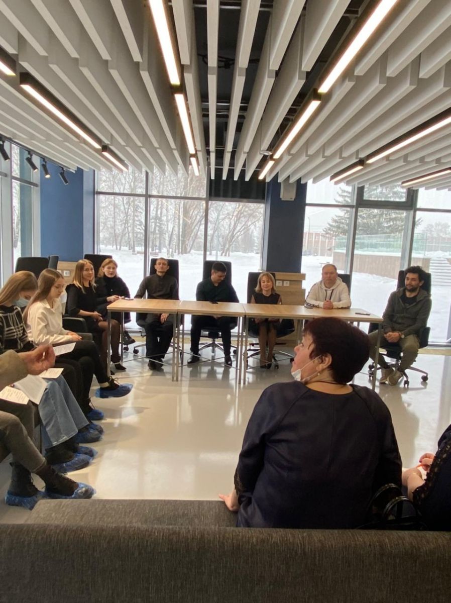 Бүген безнең гимназия укучылары Яр Чаллы дәүләт драма театрында кунакта булдылар, "Күзгә - күз" дип исемләнгән түгәрәк өстәлдә "Шәһәр. Нокта. Брежнев" спектакле хакында фикер алыштылар.