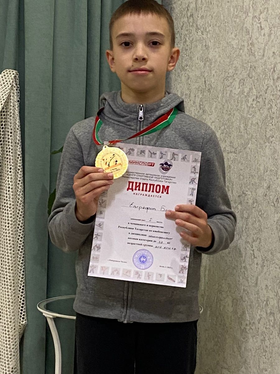 Гимназиянең 4б сыйныф укучысы Батырша Евграфовка, чынлап торып, үз исеме килешеп тора. Батырша узган атнада Татарстан беренчелегендә кикбоксинг буенча 1 нче урынны яулаган булса, буген милли көрәш буенча Яр Чаллы шәhәр мэры кубогында 3 урын алган! Афәрин, безнең батыр Батырша!